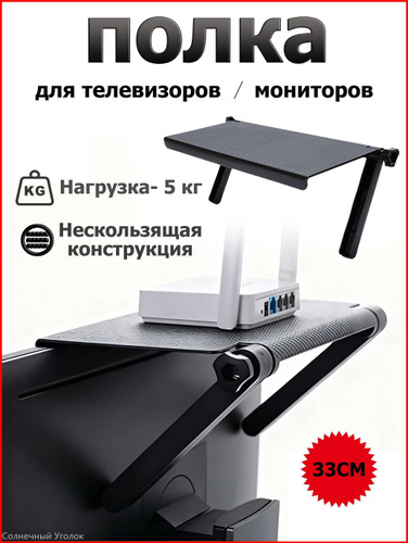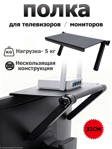 Полка-органайзер на телевизор или монитор для роутера и ТВ-приставки 33x16 см без сверления из ABS пластика для экономии места грузоподъемность 5 кг