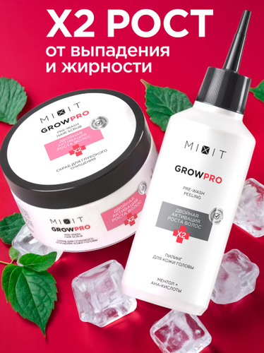 MIXIT Шампунь для волос и пилинг для роста и против выпадения волос. Профессиональный очищающий набор Grow Pro