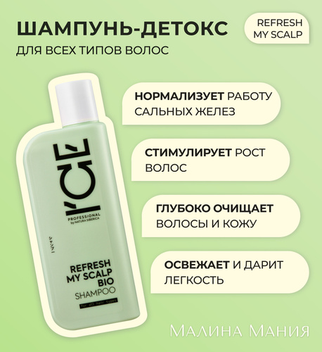 ICE by NATURA SIBERICA Шампунь-детокс для всех типов волос профессиональный, REFRESH MY SCALP 250 мл. Для ежедневного применения, глубоко очищает, тонизирует кожу головы