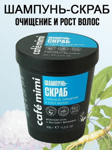 Cafe Mimi Шампунь-Скраб Глубокое очищение и рост волос, 330 г