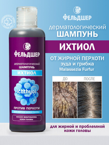 Фельдшер Шампунь от перхоти Ихтиол дерматологический, для жирной кожи головы, от зуда, от грибка,125 мл