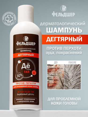 Фельдшер Шампунь от перхоти дегтярный дерматологический, с дегтем против перхоти успокаивающий, 190 мл