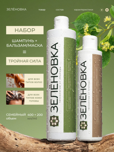 Зеленая Аптека Шампунь для волос Березовые почки и Касторовое масло против перхоти, 350 мл