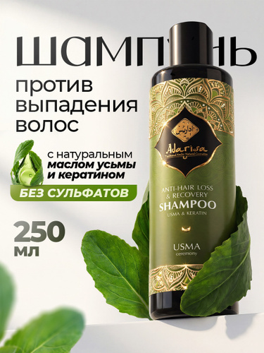 Adarisa Натуральный шампунь против выпадения волос с усьмой и кератином, бессульфатный, для роста волос, 250 мл