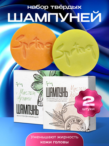 Твердый шампунь для волос женский Spring/ набор 2 шт, с маслом кокоса и арганы