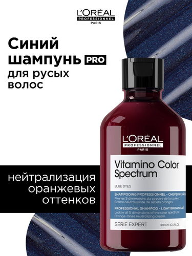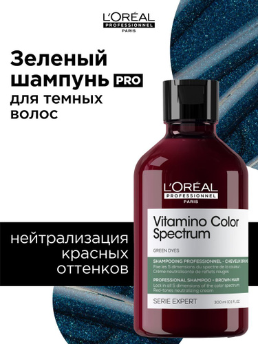 L'Oreal Professionnel Профессиональный зеленый шампунь для брюнеток Vitamino Color Spectrum для нейтрализации красных подтонов осветления, 300 мл