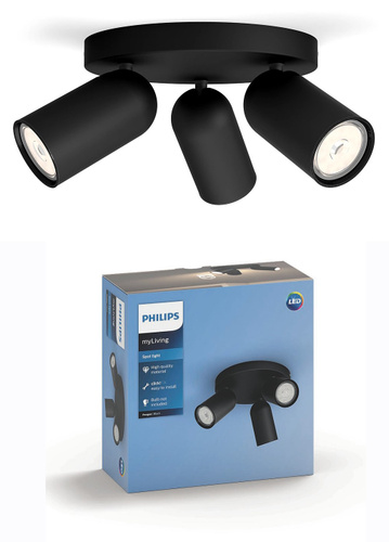 Светильник поворотный спот накладной под лампу GU10 PAR16 d224мм h82мм Металл. Черный потолочный накладаной светильник акцентного освещения PONGEE PHILIPS, уп. 1шт