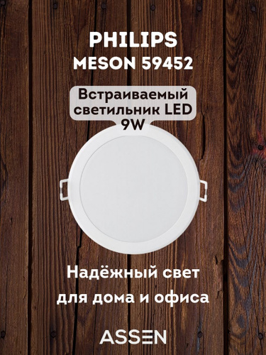 Встраиваемый светильник 17W 6500K WH 1300lm d-150 D-165 H-47 Свет Холодный белый 59466 MESON 150 Philips, уп. 1шт