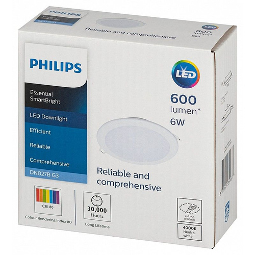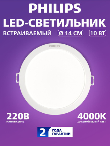 Встраиваемый светильник 12W 1300lm d-150 D-175 h-45 220-240V 4000К Свет Дневной белый DN027B G3 Philips, уп. 1шт