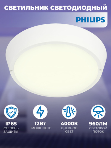 Светильник настенно-потолочный светодиодный Philips WT045C 12Вт L1054 IP54 4000К