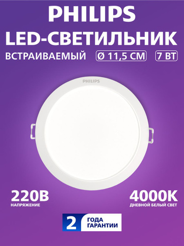Светильник светодиодный встраиваемый PHILIPS 9Вт 900 Лм 4000К круглый IP40/20 99900 DN027B LED9/NW D125 RD