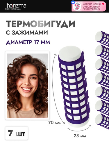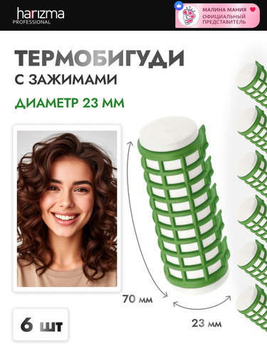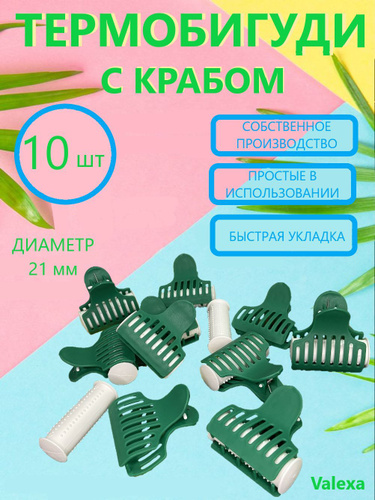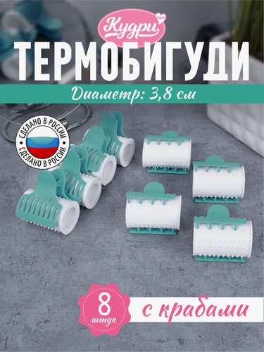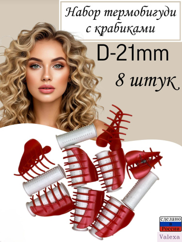 Термобигуди D-21 мм, 8шт, крабы 8шт