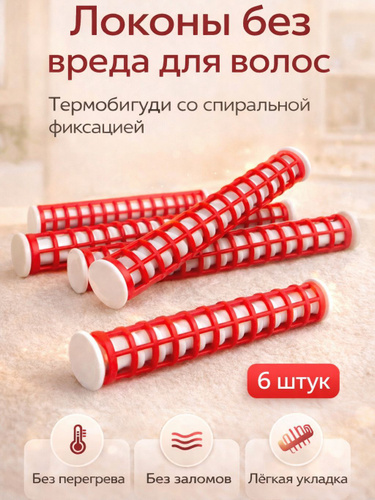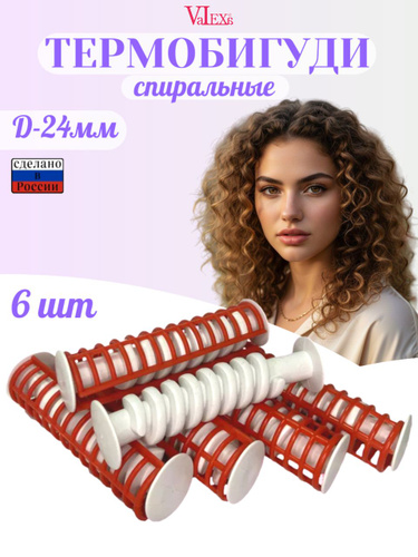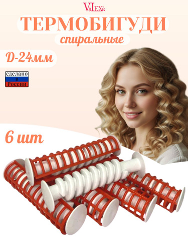 Спиральные термобигуди с решеткой D-24 мм, 6 шт