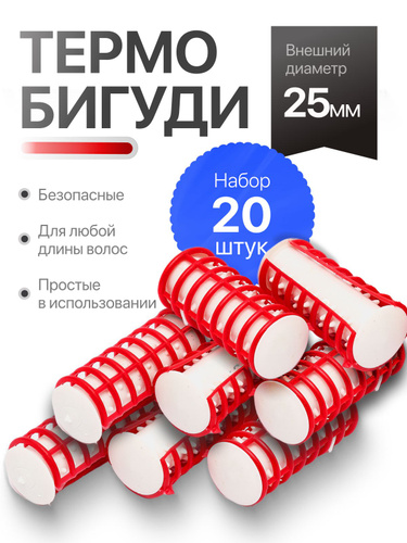 Термобигуди D-21 мм 10шт, крабики 10 шт, в тубе