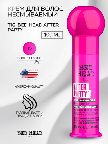 TIGI Bed Head Разглаживающий крем для придания блеска и свежести волосам After Party, 100 мл.