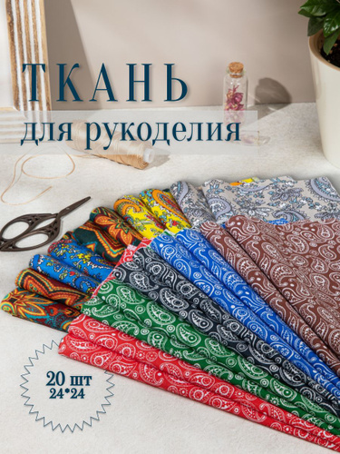 Отрезы ткани для шитья и рукоделия / Огуречный орнамент 20 отрезов 24*24 см.