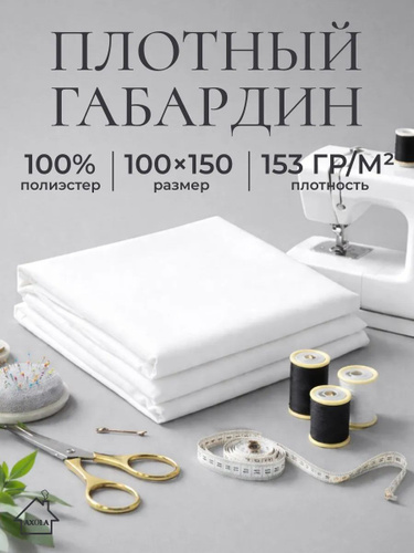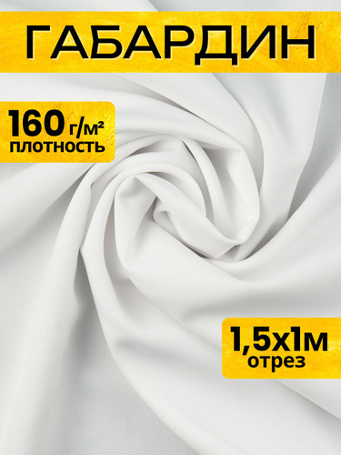 Габардин (100% ПЭ) цвет белый ширина 1.5м (длина 1м), костюмная ткань 160 гр/кв.м. на отрез, габардин для шитья одежды, школьной формы, спецодежды, штор, декора, рукоделия