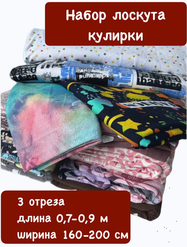 Лоскуты ткани для рукоделия, трикотаж Кулирка, отрезы от 0,7-0,9 м ширина 160-180см.