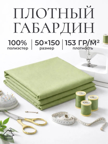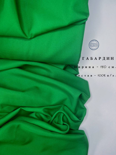 Габардин для шитья зеленый, отрез 1 метр, плотность 150г/м2, ширина 150 см, ткань для шитья и рукоделия