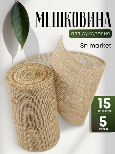 Мешковина джутовая для рукоделия 5 м, 15 см ширина, Ткань упаковочная для интерьера декора, растений, картошки, поделок, картин, штор