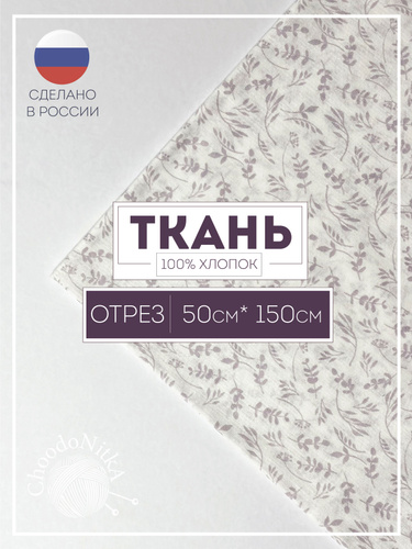 Ткань для рукоделия и шитья, Лиловая ветка, Отрез 50*150 см, 100% хлопок , СО50-5
