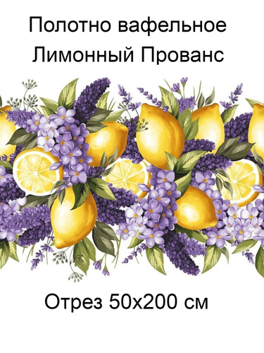 Ткань для шитья, Вафельное полотно "Лимонный прованс", отрез 50х200 см, 1 шт