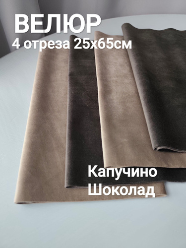 Велюр, 4 отреза 25х65см. Ткань для шитья. Капучино, шоколад.
