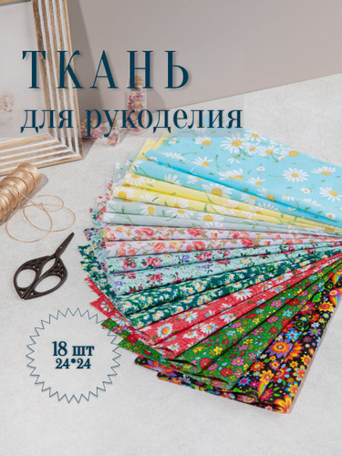 Отрезы ткани для шитья и рукоделия / Цветы 18 отрезов 24*24 см.