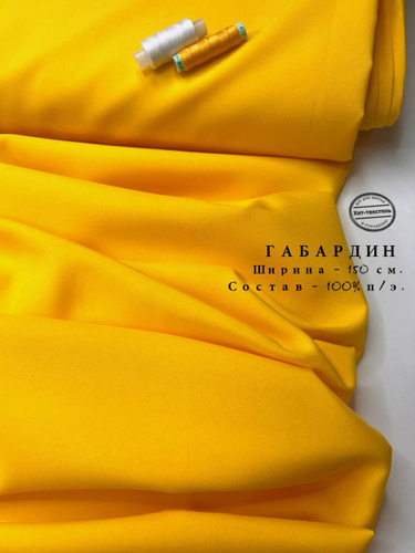 Габардин для шитья желтый, отрез 1 метр, плотность 150г/м2, ширина 150 см, ткань для шитья и рукоделия
