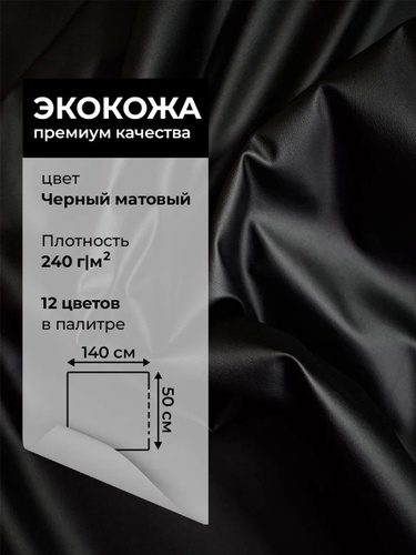 Экокожа на трикотаже ткань для шитья, ш.140 см. х 50 см. отрез, кожзам черный