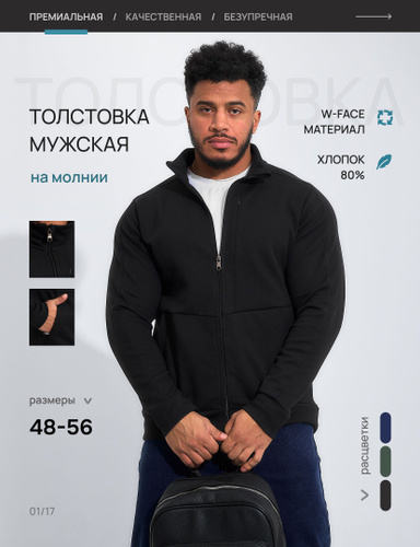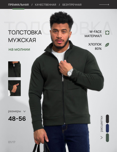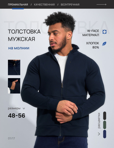 Толстовки мужские на молнии хлопковые