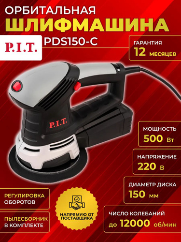 Орбитальная шлифовальная машина (эксцентриковая) PIT PDS150-C, 500 Вт, диск 150 мм, до 12000 об/мин