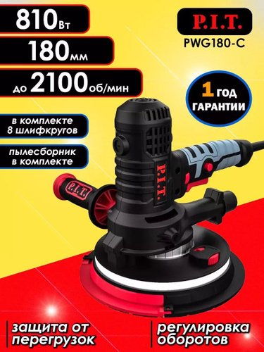 Шлифмашина для стен и потолков PIT PWG180-C, 810 Вт, диск 180 мм, до 2100 об/мин