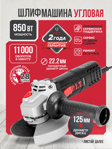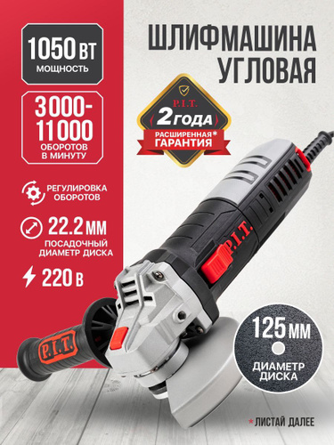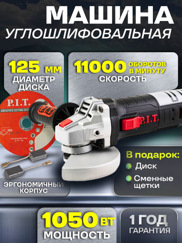 Болгарка 125 мм, УШМ болгарка P.I.T. 1000 Вт, 11000об/мин, М14