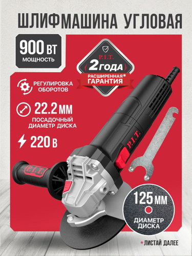 P.I.T. Шлифмашина угловая (УШМ, болгарка) 125мм, 900 Вт, регулировка оборотов