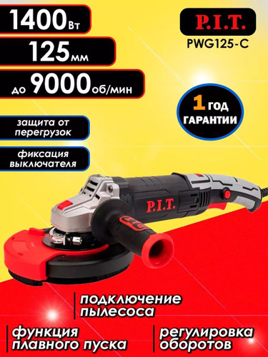 Шлифмашина по бетону (УШМ, болгарка) PIT PWG125-C, 1400 Вт, диск 125 мм, до 9000 об/мин