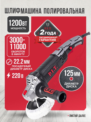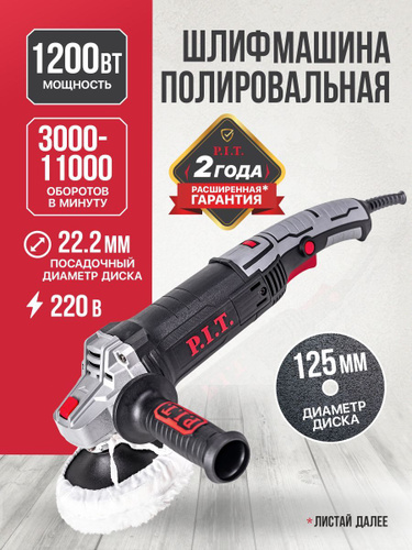 Полировальная машинка P.I.T. PPO125-C1, 125мм, 1200Вт, регулировка оборотов