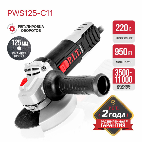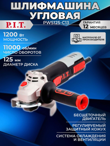 Шлифмашина угловая (УШМ, болгарка) PIT PWS125-C13, 1200 Вт, диск 125 мм, 11000 об/мин