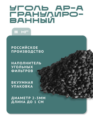 Активированный уголь АР-А 3кг / сорбент для фильтрации воды и воздуха / гранулированный, ГОСТ 8703-74, Россия
