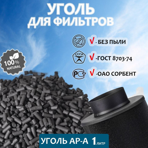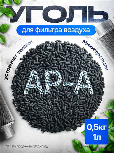 Уголь активированный АР-А 1л 0.5кг для очистки воздуха от запахов, наполнения угольных фильтров и кухонных вытяжек