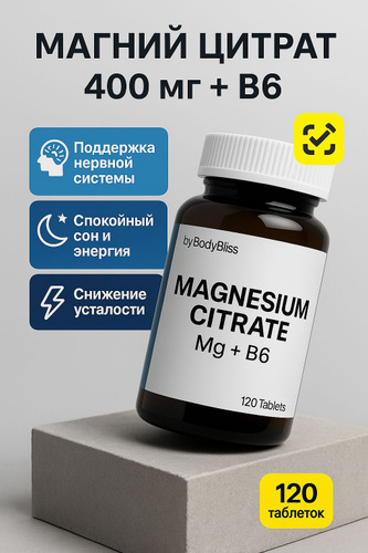 Магний Цитрат 400 мг + Витамин B6 6 мг - 120 таблеток , магне в6, магнелис б6 успокоительное для взрослых мужчин и женщин, Body Bliss