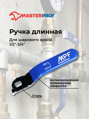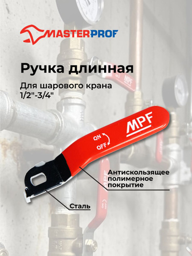 Ручка для шарового крана, длинная, усиленная, для крана, 1/2" - 3/4", прорезиненная КРАСНАЯ, MP