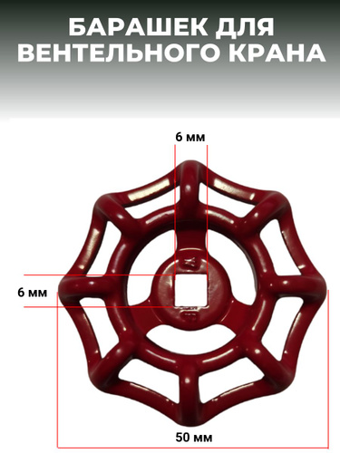 Маховик (БАРАШЕК) для вентильного крана 6х6 красный