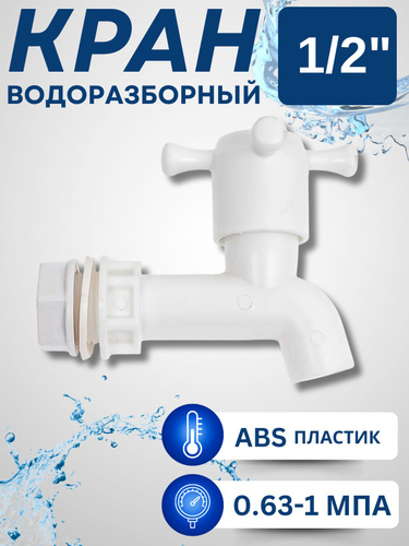 Кран для воды угловой пластиковый Для дачного умывальника 1/2" дюйма Вентиль садовый водоразборный