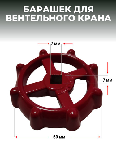 Маховик (БАРАШЕК) для вентильного крана 7х7 красный