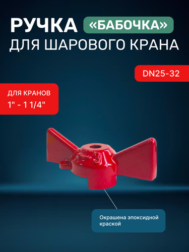 Ручка для шарового крана бабочка для 1/2" - 3/4" (DN15-20) красный / барашек для крана