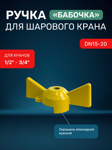 Ручка для шарового крана бабочка для 1/2" - 3/4" (DN15-20) желтый / барашек для крана