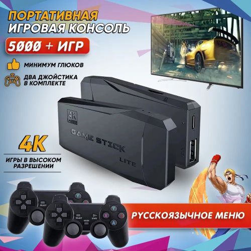 Игровая приставка Game Stick Lite 64 GB, 4K, 5000+ Ретро Игр на Русском и Английском языке для телевизора Y3, 8-16-32 бит Портативная игровая консоль с эмуляторами игр.