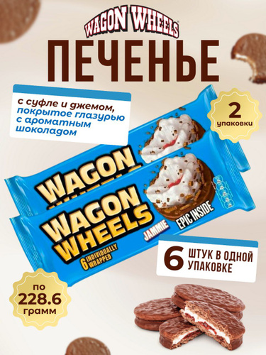 Печенье Wagon Wheels с суфле и джемом покрытое шоколадной глазурью, 2 упаковки по 228 грамм