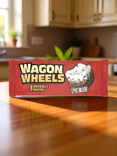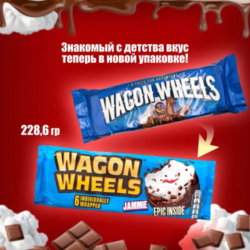 Печенье бисквитное Wagon wheels с суфле и джемом покрытое глазурью с ароматом Шоколада, 228,6 г, 1 шт